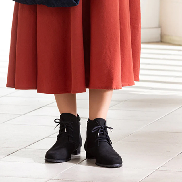 外反母趾の方にもおすすめの幅広4Eに、脱ぎ履きしやすく目立ちにくい内側ファスナーなど機能性にも優れた逸品です。
