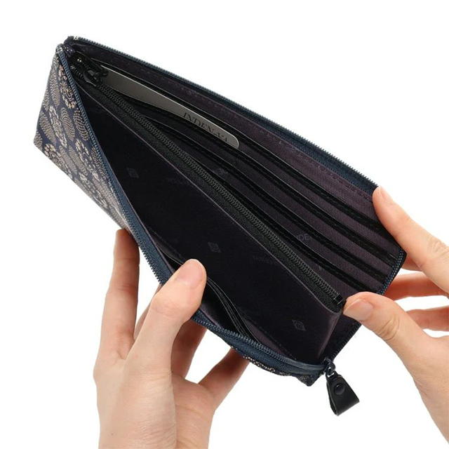 チケット等が入る長ポケット1室、お札入れ2室、カード入れ12ポケット、小銭がたっぷり入るマチ付きのファスナーポケット1か所と、機能も充実。