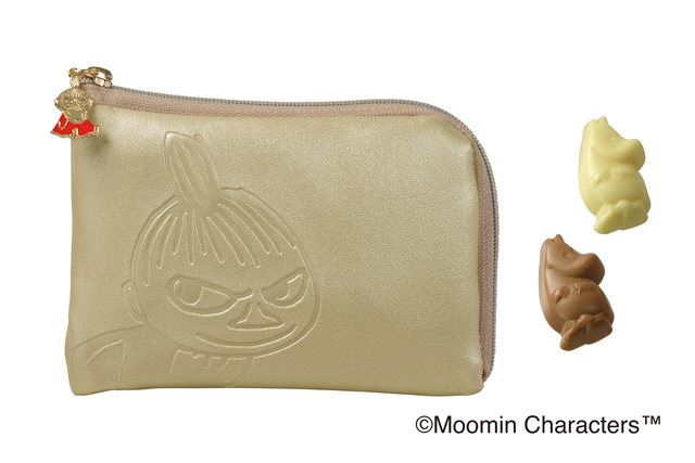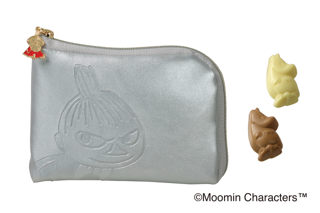 ムーミンの形をしたハイミルクチョコレートとホワイトチョコレートが入った、食べた後も楽しみなポーチです。