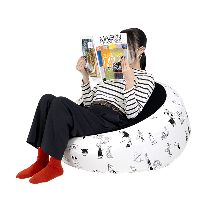 ムーミンの物語の世界観を大切にしながら、インテリアとしても取り入れやすいデザインに仕上げた一人用クッションソファ。