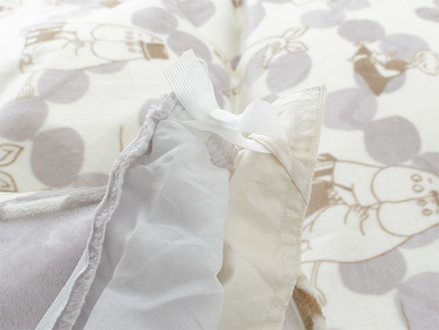 おふとんとカバーとをズレにくくする紐には、スナップボタンを付けちゃいました。
