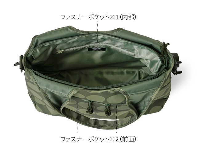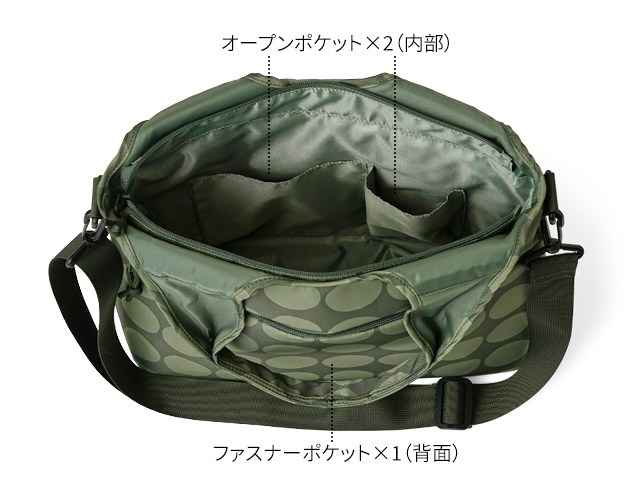 斜め掛けと肩掛けに対応するショルダーストラップ付き。デイリーからお出かけまで活躍。