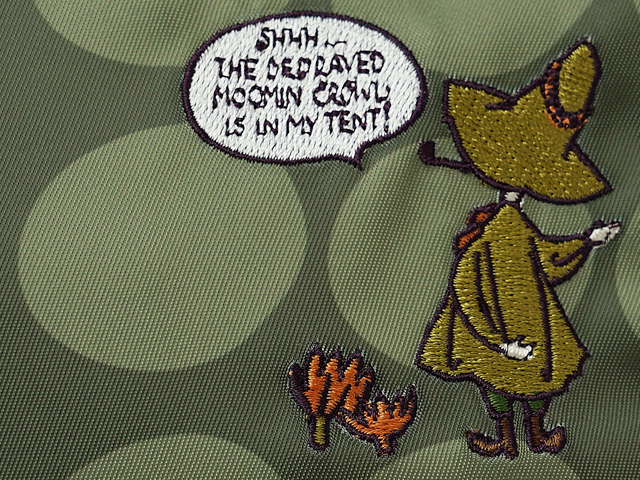 ★オリジナルの水玉プリントにスナフキンのアートを刺繍