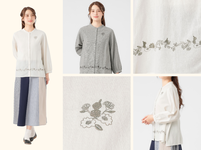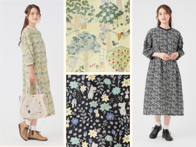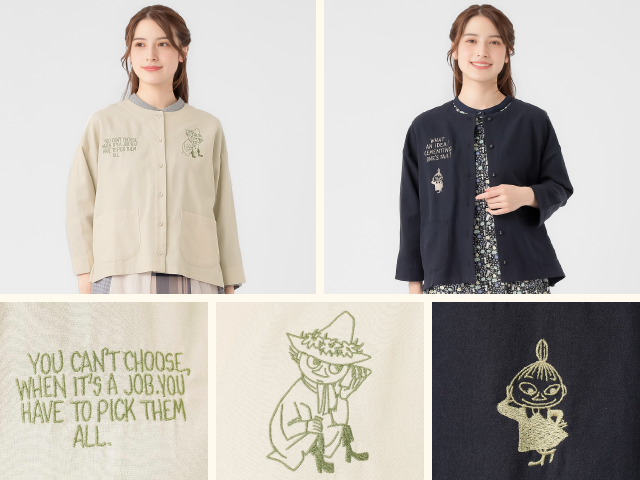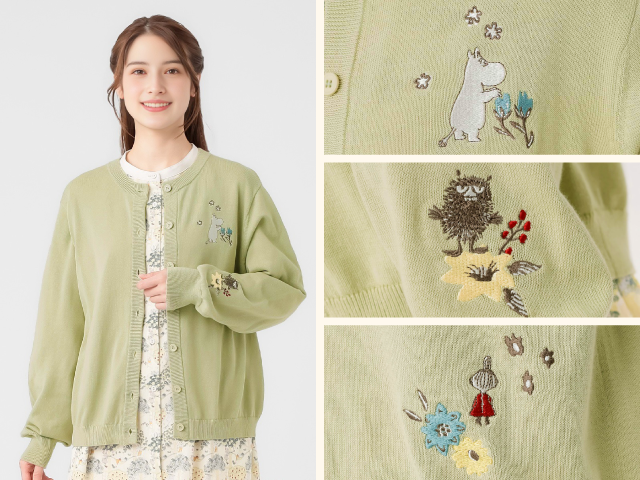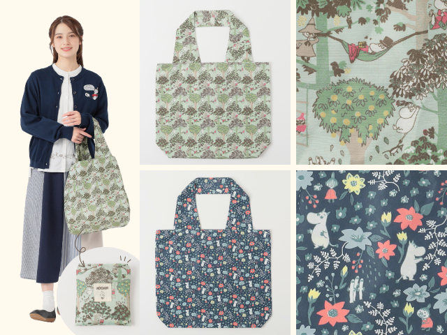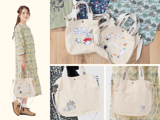 ワンピースやカーディガン、ブラウスジャケットに加え、ムーミン柄のエコバッグやキャンバスバッグも揃い、春のお出かけにぴったりです。