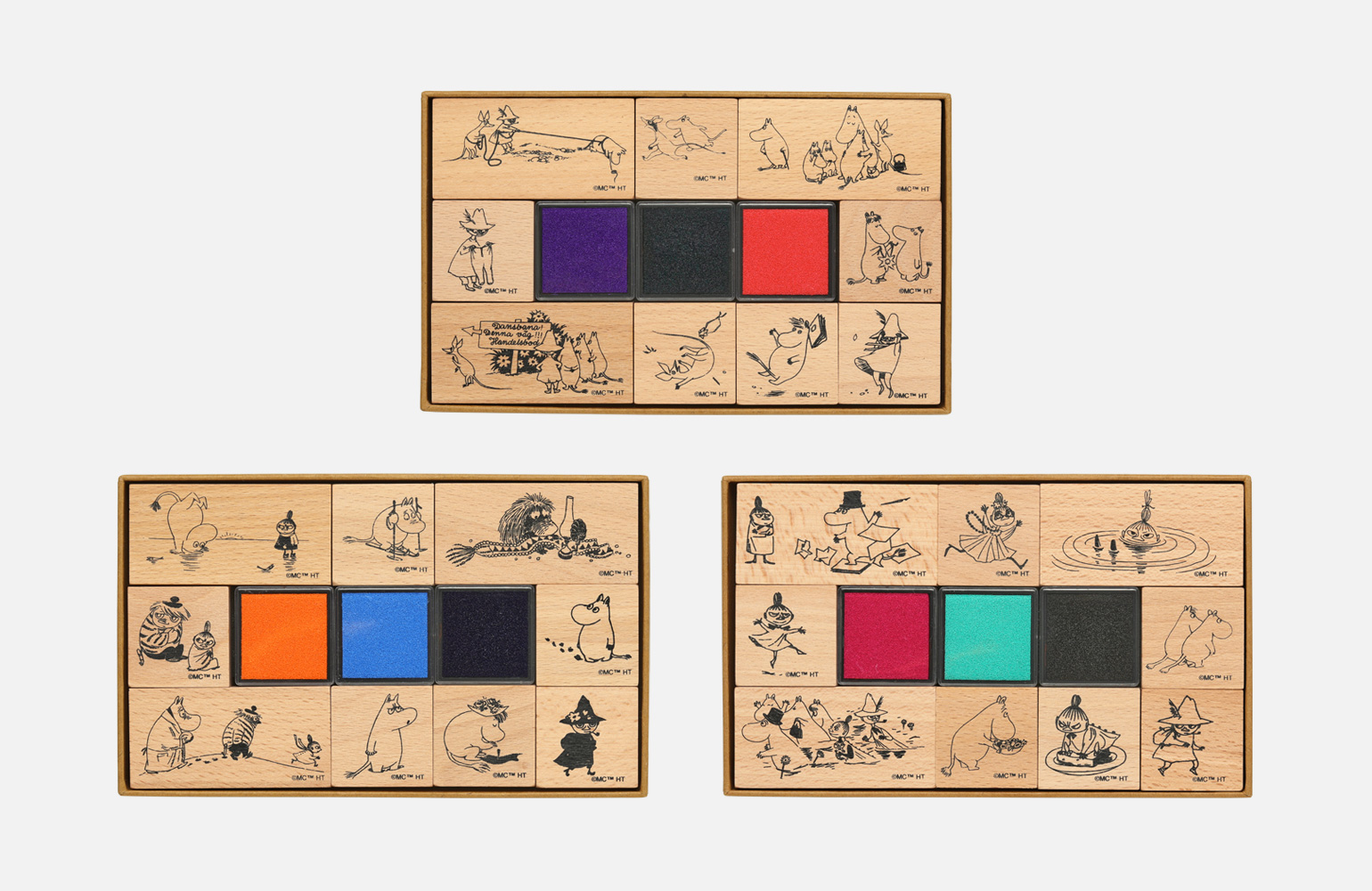 ムーミンの小説の挿絵を使用した、3種類のスタンプセットをご用意しました。