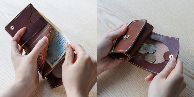 コンパクトながら収納力もしっかりあり、お札も小銭、カードもしっかり持ち運べます◎