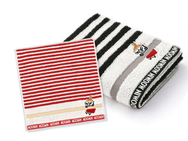 シンプルなボーダー柄に、右下へさりげなく施したリトルミイの刺繍が目を引くタオルです。