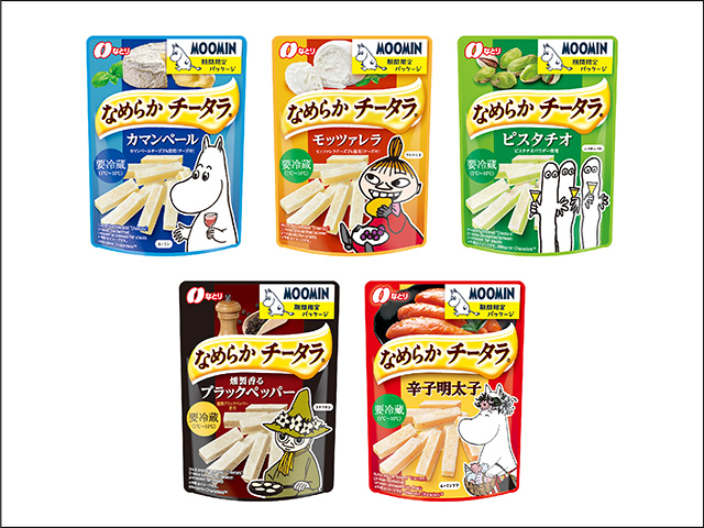 5種類の商品にはムーミン、ニョロニョロ、スナフキン、リトルミイ、ムーミンママと、人気のキャラクターがデザインされ見た目にも楽しめるパッケージに仕上がっています。お好きなキャラクターを見つけてぜひお楽しみください!