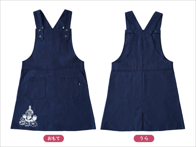 リトルミイのワンポイントがかわいい、ジャンパースカート風エプロン。家事の時間もちょっと楽しく、近所のお買い物にもそのままお出かけ。ワンピース感覚で着られる「ジャンスカエプロン」のご紹介です!