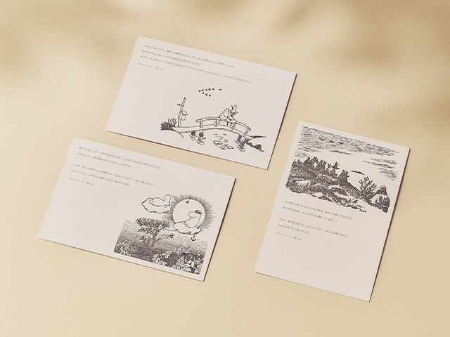 ムーミン小説から、ムーミン谷にあるささやかな楽しみや喜びのワンシーンを限定パッケージにしました。「幸せを重ねる」をコンセプトに日々の暮らしに寄り添うお菓子をお届けしたい、そんな治一郎の想いをムーミンの物語に重ねました。