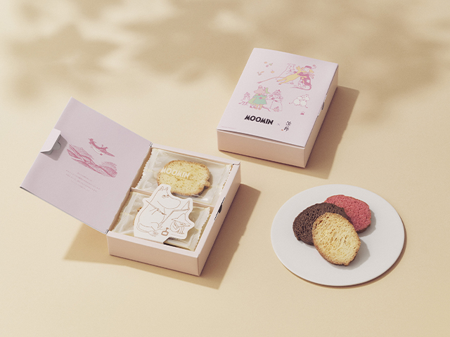 こだわりのデニッシュに、バターをたっぷり塗り込み、じっくりと焼き上げた「ビスコット」の詰め合わせ。ムーミン小説4作目「ムーミンパパの思い出」から仲間たちとの再会の心温まるシーンをパッケージにしました。