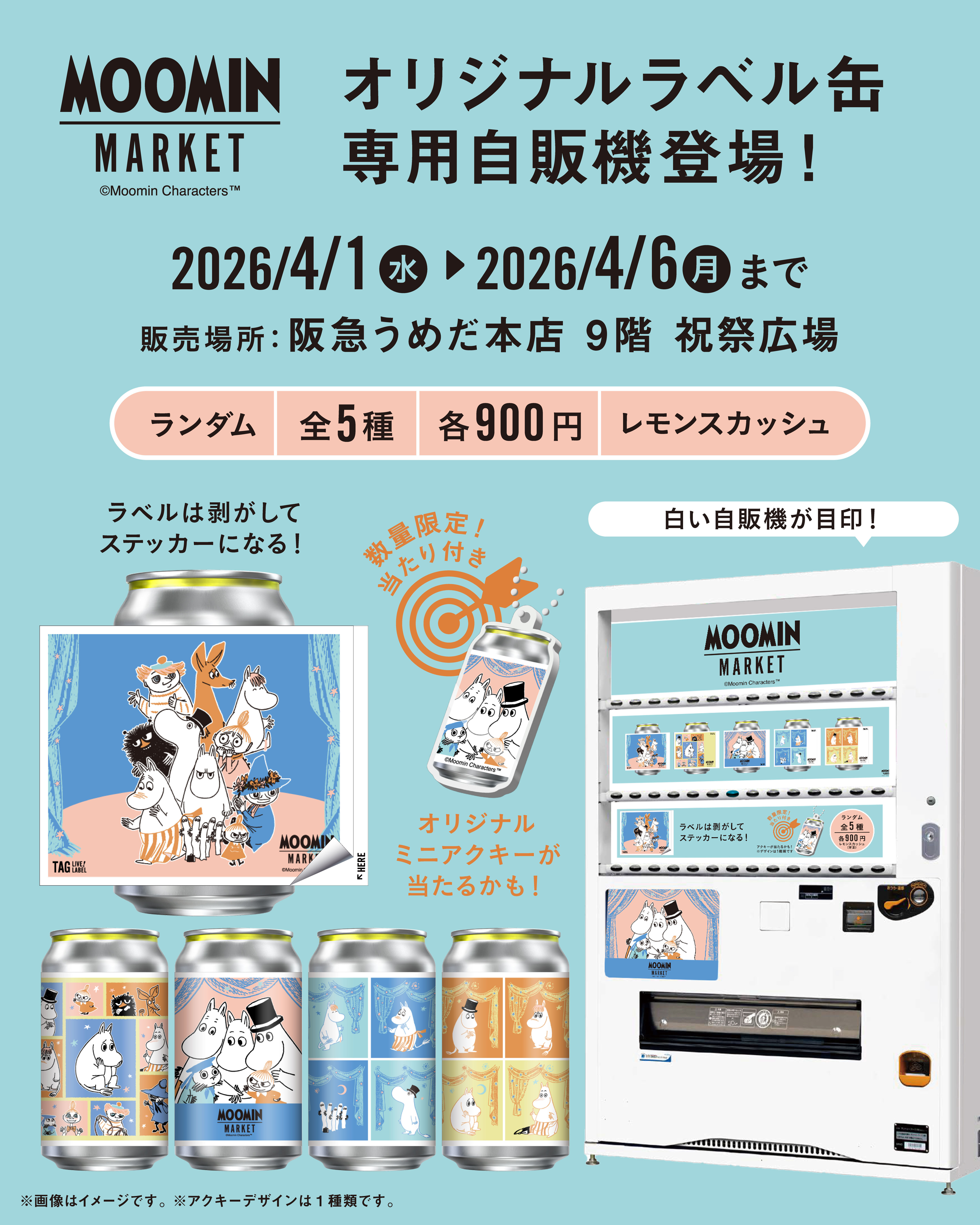 ムーミンのオリジナルラベル缶自販機が阪急梅田に登場!