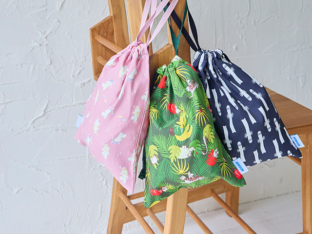 巾着やバッグは、軽くて持ち運びしやすいサイズ感。