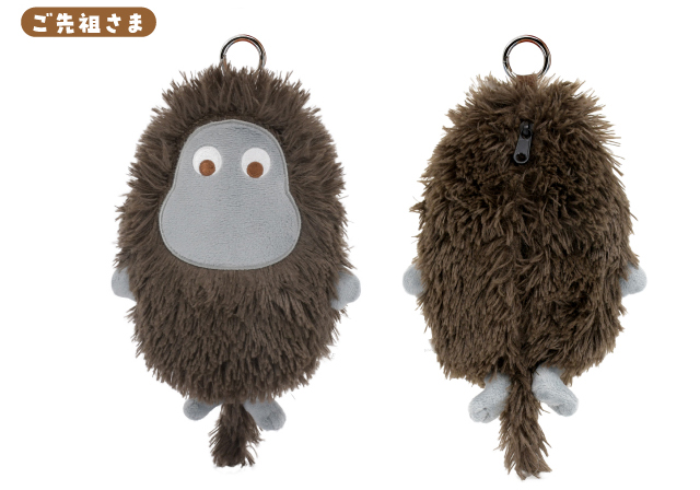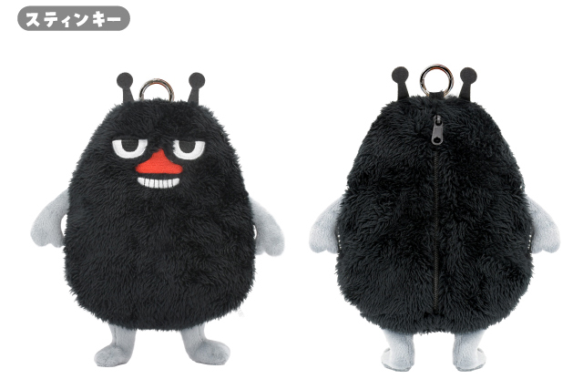 背面のファスナーから小物を収納してポーチにしたり、カラビナに紐を通してポシェットとしてもたのしめるぬいぐるみです。