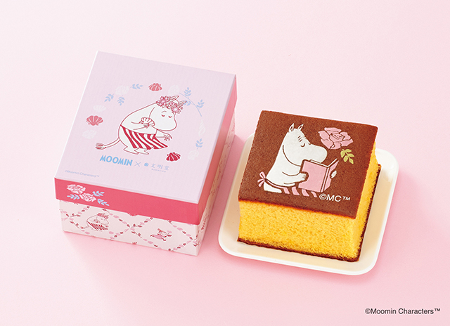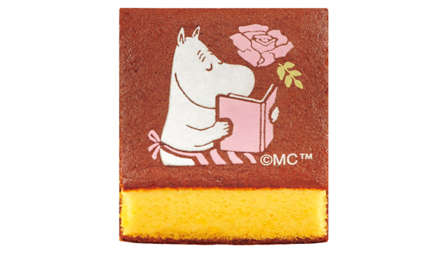 ムーミンデザインのオリジナルボックスはもちろん、中身のカステラにも可愛いアートが転写された、贈り物にぴったりの一品です。